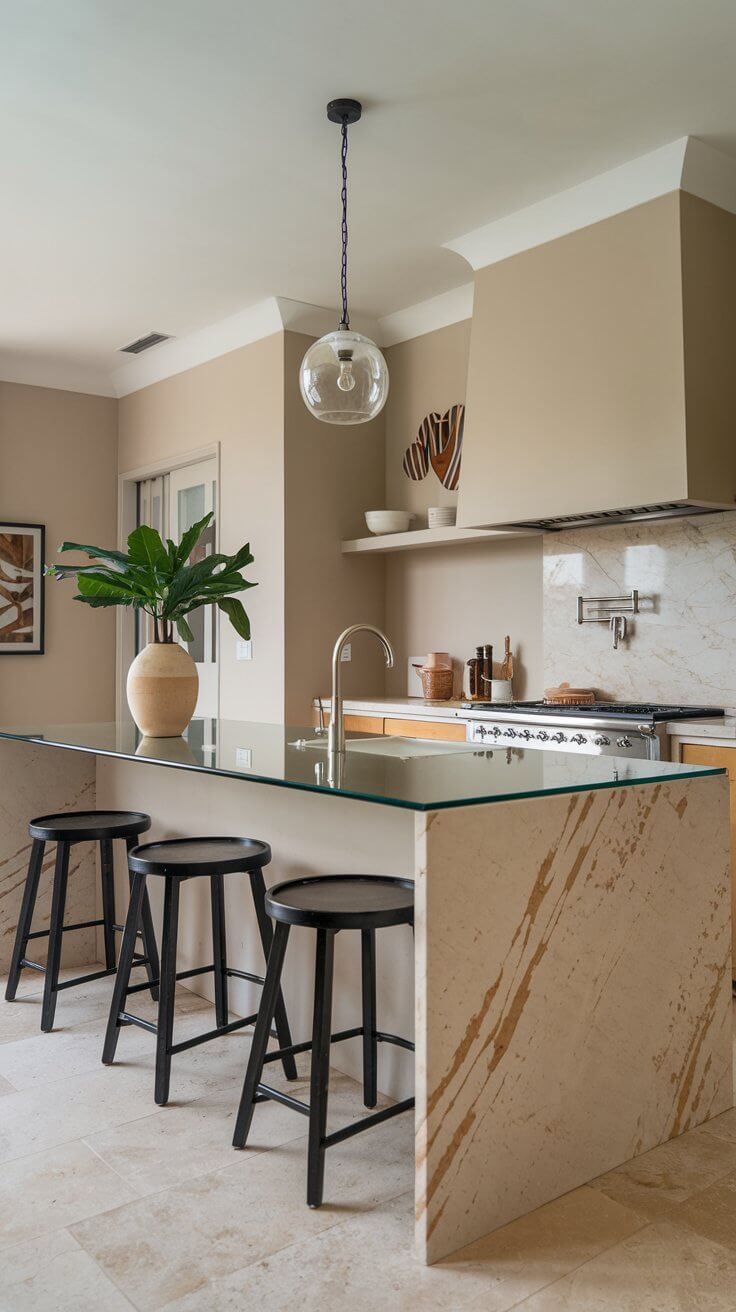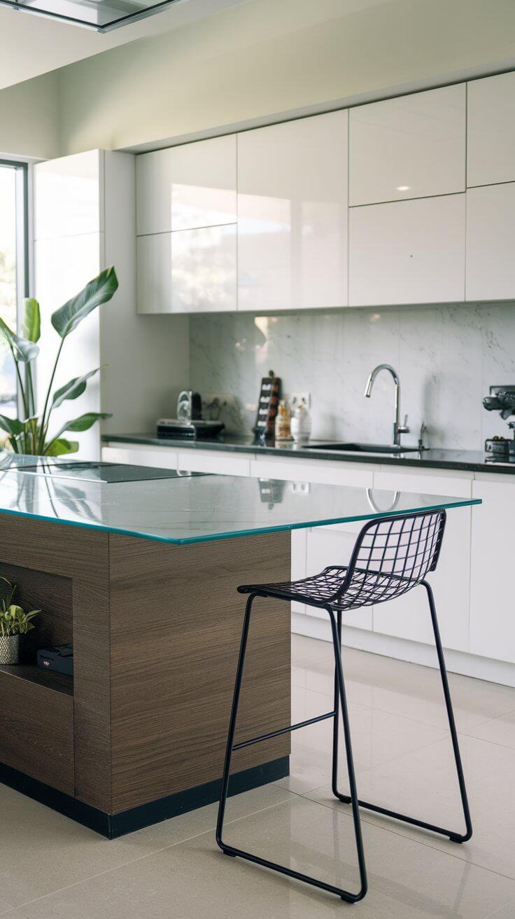 A glass top kitchen island adds a touch of modern style to any cooking space. It’s a great spot for preparing meals or enjoying a casual breakfast. Plus, the sleek design makes it easy to clean and maintain.