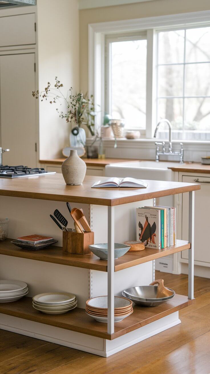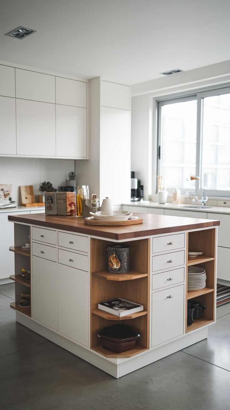 This simple white island adds a fresh touch to any kitchen. With open storage, you can easily display your favorite items while keeping everyday essentials close at hand. It’s a stylish way to stay organized and make cooking more enjoyable!