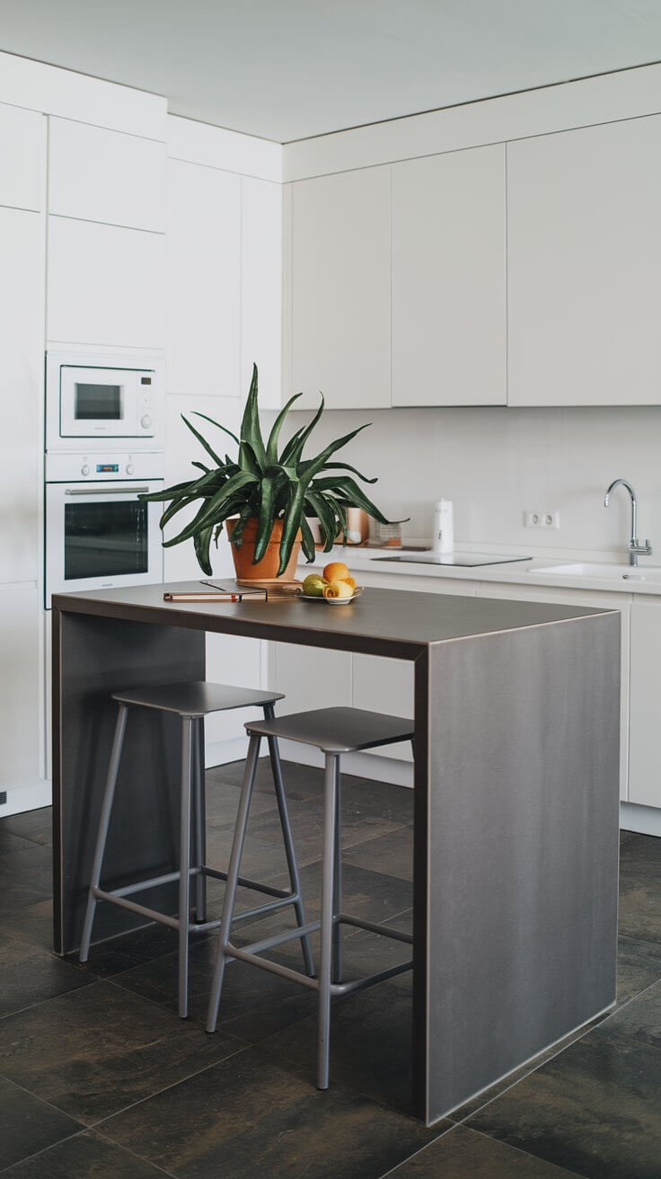 The minimalist galley island is a great way to keep your kitchen neat and stylish. With clean lines and simple decor, it creates a calm vibe in the space. Plus, it offers plenty of storage for all your kitchen essentials.
