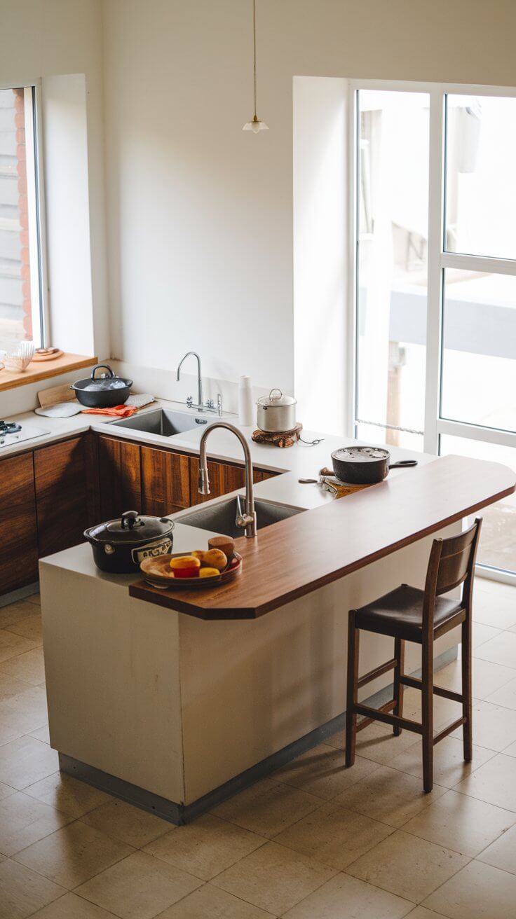 If you’re tight on space, an L-shaped island is a clever solution. It fits perfectly into corners while providing extra storage and seating. This design adds style and functionality to your kitchen.
