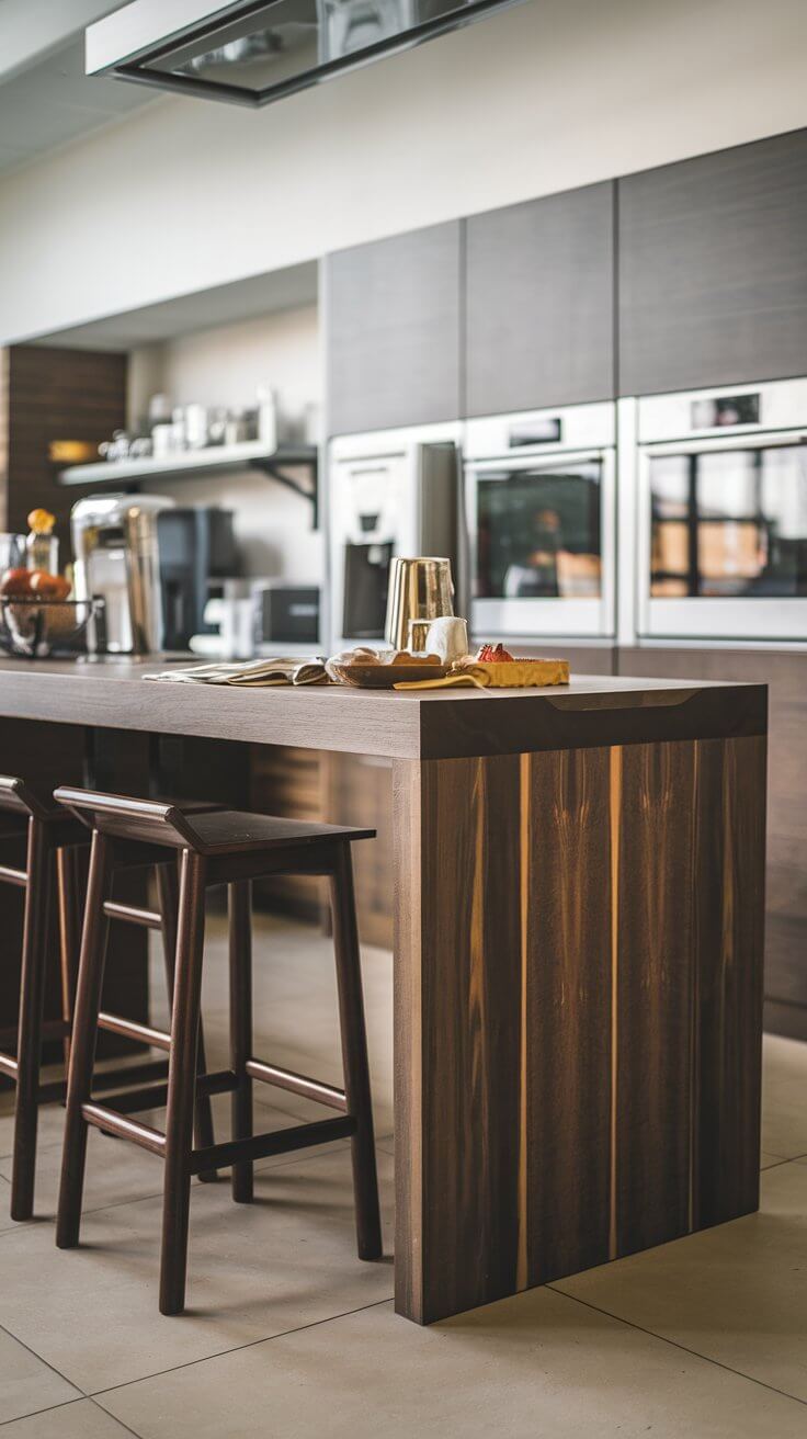 The bar-height island adds a modern touch to any kitchen. It’s perfect for casual meals or chatting while cooking. With a few stylish stools, it becomes a cozy gathering spot.